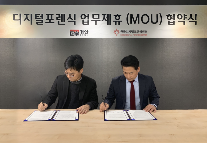 법무법인 거산은 2018년 11월 22일 한국디지털포렌식센터와 업무협약을 체결하였습니다.